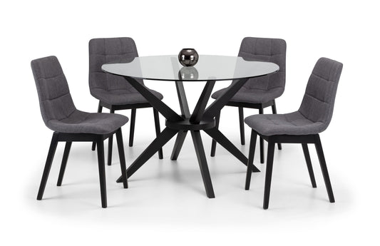 Hayden 1.2m Round Glass Dining Table with 4 Hayden Grey Dining Chair