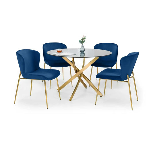 Montero 1m Glass Round Table & 4 Delaunay Blue Chairs