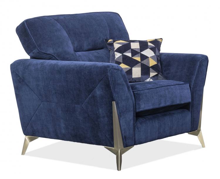 Impress your guests with Athens a modern statement sofa with edgy trapezium detailing and a glamourous hand-finished, stainless steel leg that appears to seamlessly flow into each arm. Some bold fabric choices including navy blue velvet, the perfect backdrop for a gleaming gold layer of luxury with contrasting geometric scatter cushions that pick up the brushed gold or polished chrome metallic finishes. Available in a choice of sofa sizes, a Snuggler, and an Armchair, or combine with a matching Juno Accent chair in metallic velvet for a confident take on the glamour trend.