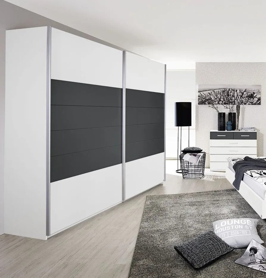 Barcelona 2 Door Sliding Wardrobe in White and Metallic Grey