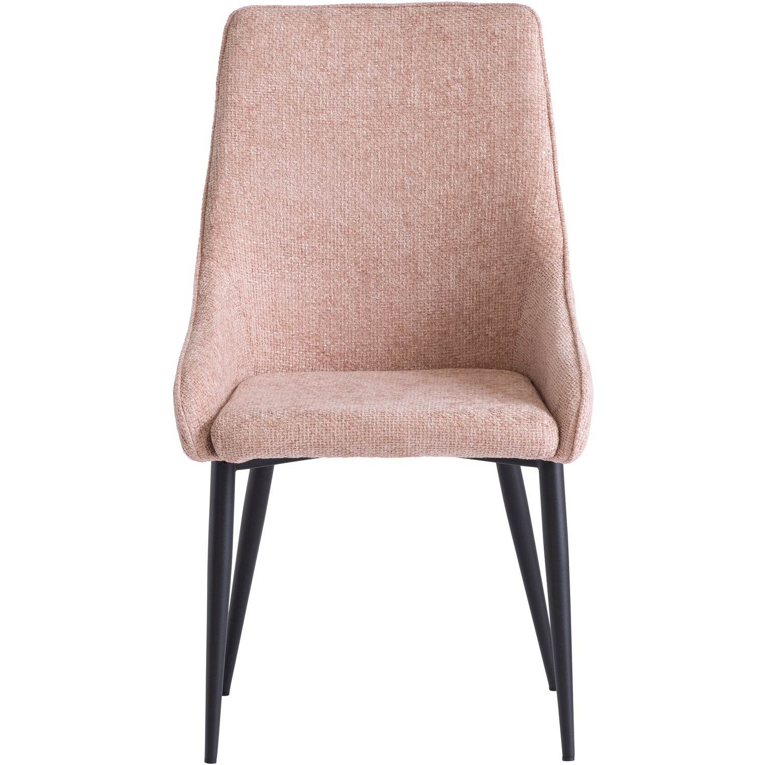 Modern designer chic is delivered in this statement dining chair with beautifully tailored textured fabric with piping detail and black powder-coated legs.