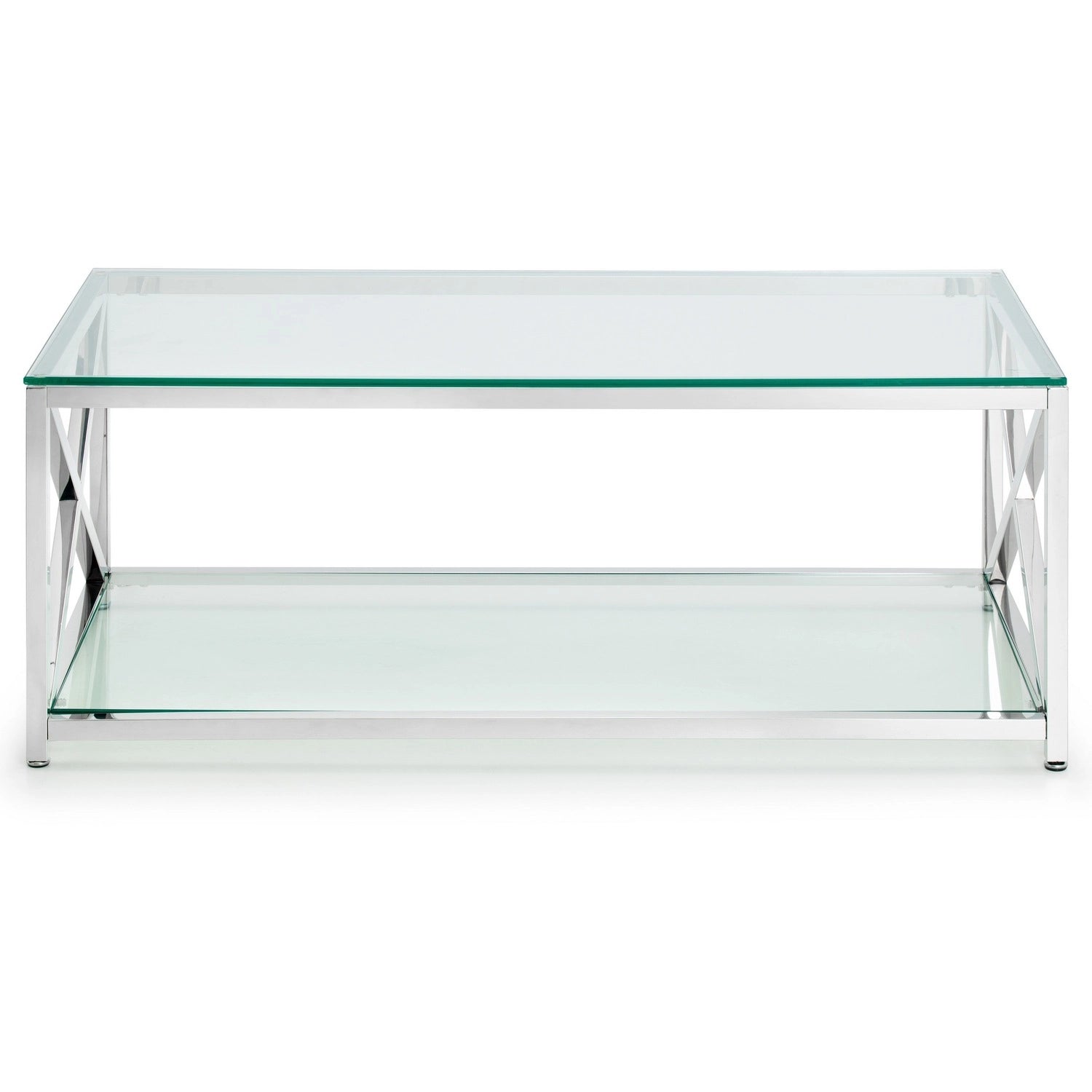 The lavish Miami occasional collection will add a touch of class and luxury to any home. Taking inspiration from the Art Deco period, the Miami features a striking cross frame design. Crafted from a high quality stainless steel frame and tempered glass, this coffee table provides a shelf underneath for additional storage.