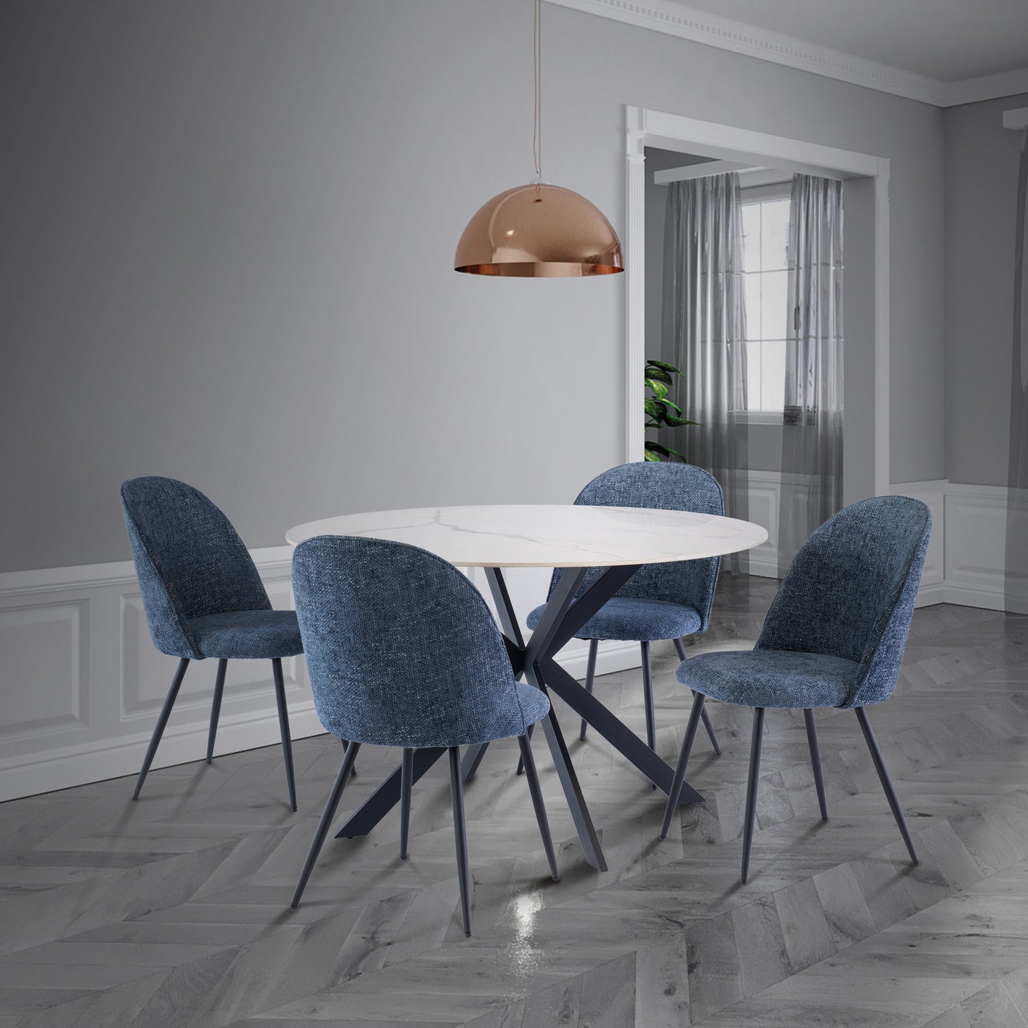 Ramona Textured Fabric Dining Chair Blue