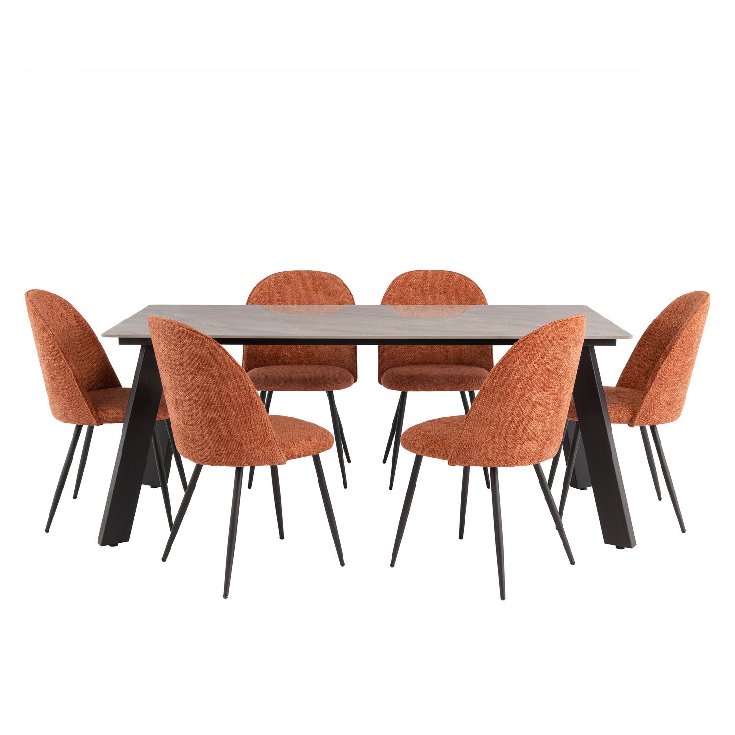 Perfect for any dining space, Ramona more than delivers on style and comfort. Wonderfully well-cushioned and tailored with textured fabric and piping. Finished with black powder-coated legs.
