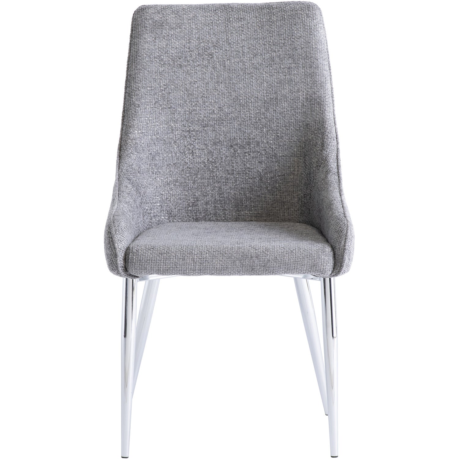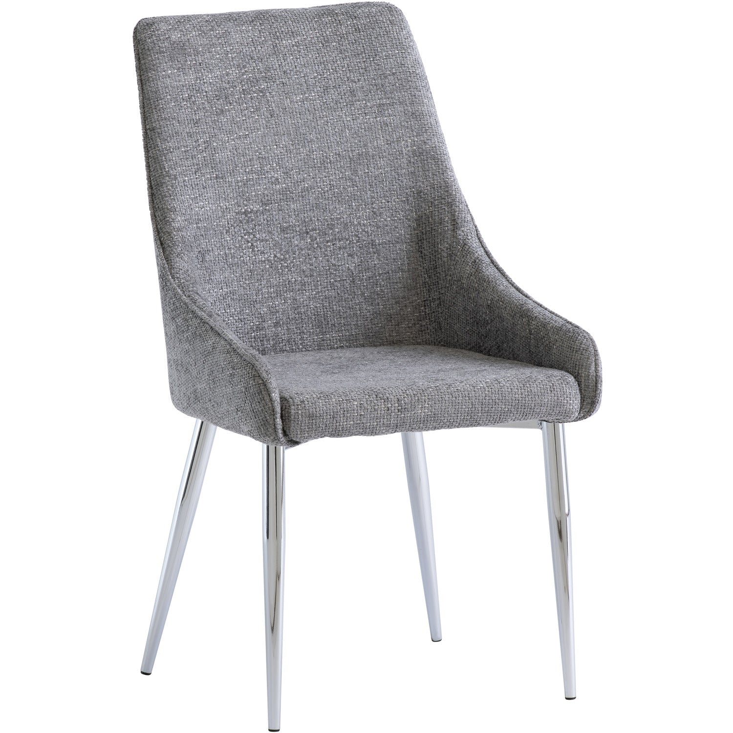A very contemporary dining chair, sure to compliment most modern dining tables with a textured fabric and piping design. Comfortable seat with Polished chrome legs